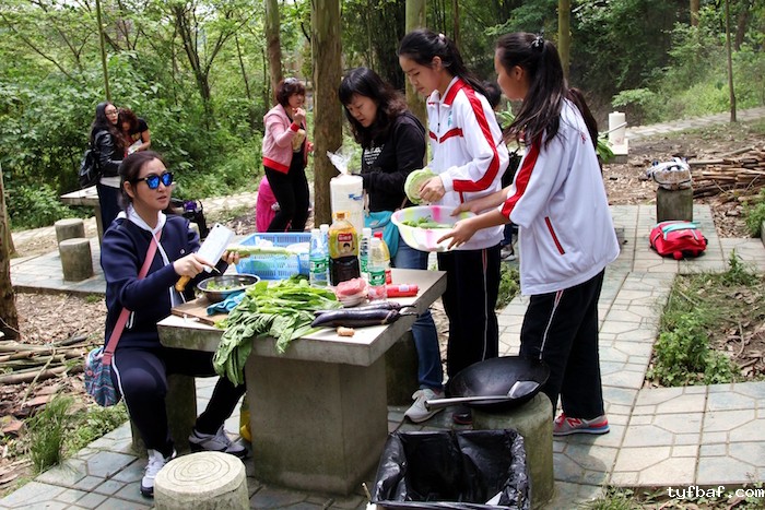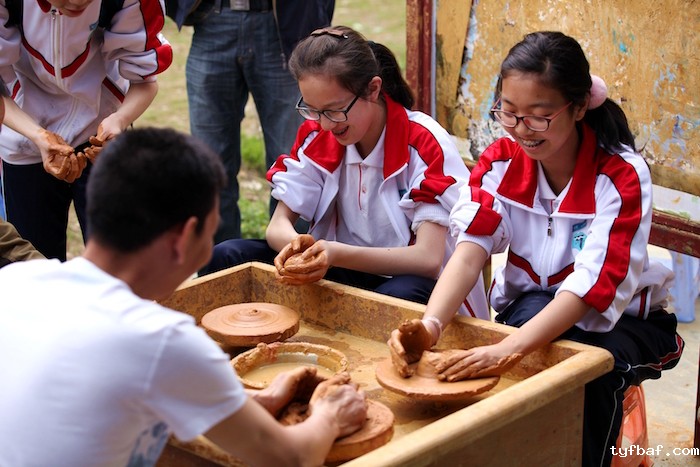 中午时分,在与老人们依依惜别之后,大家又启程前往了位于彭州市郊的中华蝴蝶生态城,午餐时间,同学们和家长们按照事先分好的小组。一起动手洗菜、烧菜、做饭,大家在相互协作中体会到了“自己动手丰衣足食、集体劳动光荣”的乐趣。午餐后,同学们又去参加了现场制作蝴蝶标本的活动,然后是现场实践体验制作陶艺——陶缘结艺。再后来又进行了一场亲子拓展活动,其中“无敌风火轮”游戏让参与者充分领会到了团结合作的重要性,同时又增强了同学们和父母间的相互信任与理解。最后,大家又一起参与了“我知父母心”的植树活动。带着满满的收获与欢乐,结束了一天的活动。大家度过了一个有意义、充实而又美好的一天,留下了最美好、最值得珍藏的记忆。