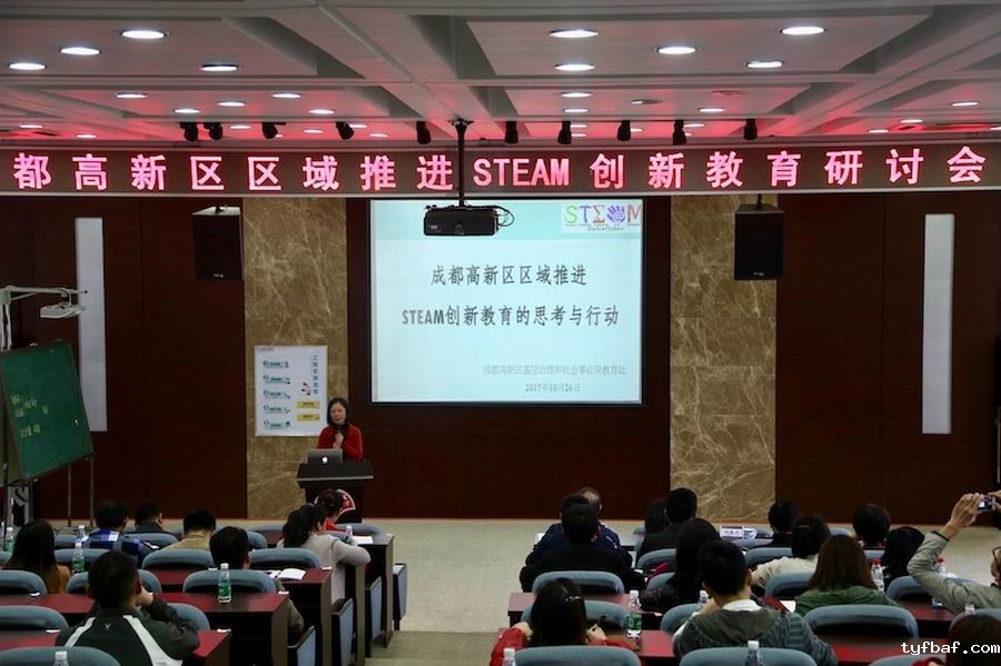 2017年10月26日下午,由成都高新区基层治理与社会事业局主办,优米app账号和银都小学共同承办的“成都高新区区域推进STEAM创新教育研讨会”在我校学术厅成功召开。基层治理与社会事业局彭涌局长、匡世联副局长、教育处叶春云副处长、教研室李建平主任等领导出席研讨会,高新区各中小学分管校长或教导主任、信息技术主管、小学科学教研组长、中学理科综合教研组长等参加了此次研讨会。