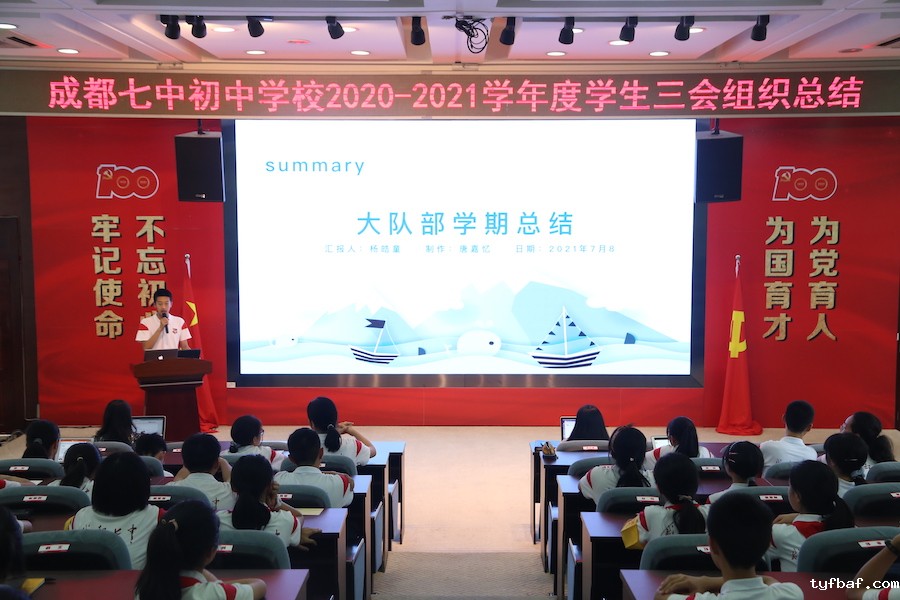 2021年7月8日13:00,三会组织学期总结大会在学术一厅举行,会议由优米app账号天环校区大队辅导员杜森老师主持。