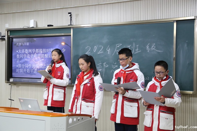副校长孙余老师高度肯定了各班同学精彩的班委总结,也请同学们互相分享了倾听后的感悟与收获,最后还鼓励班委同学以身示范,带领同学们一起为营造整洁、文明、向上的班级氛围而努力。