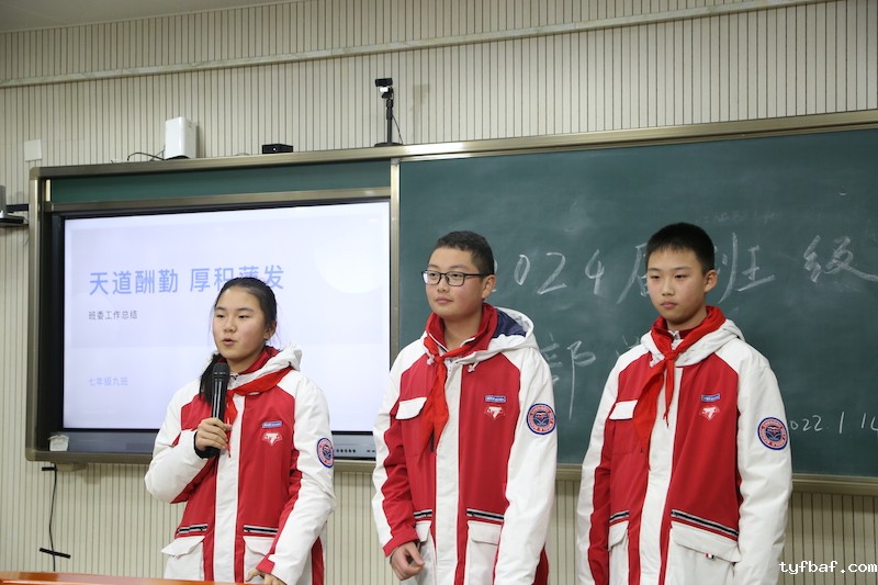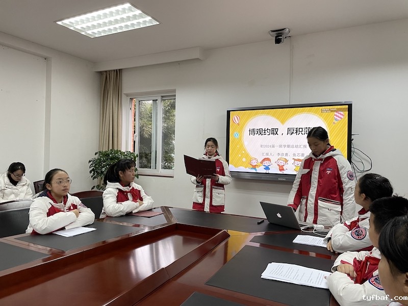 优美诗意的文辞,大方得体的谈吐……2023届4班的班委十分重视同学综合素质的培养,在汇报中鼓励同学们做全面发展的七初学子。