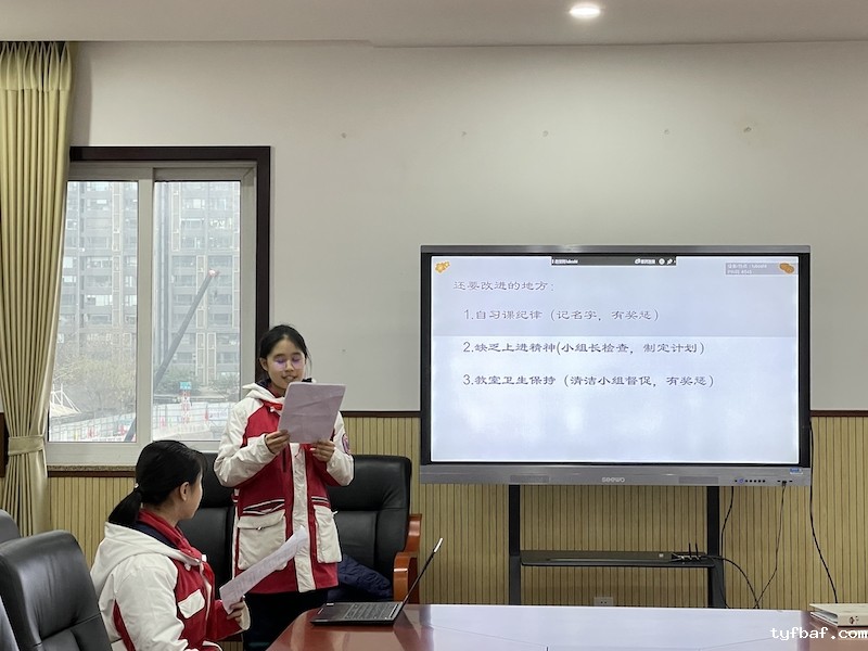 在一个班集体中,高效自主的优良学风固然重要,如何营造这一优良学风是2023届7班班委主要关注的问题。他们自信大方,条理清晰地分享总结一学期以来的得失。