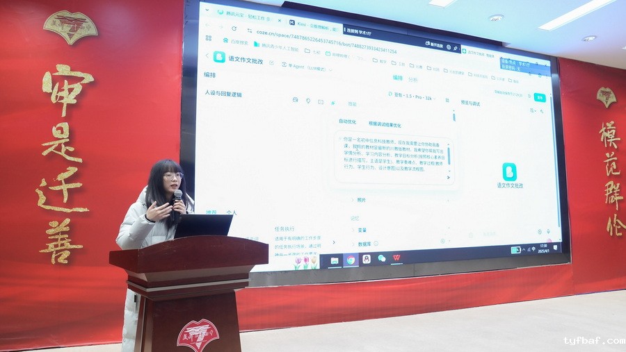 张雅妮老师展示了利用AI技术进行个性化教学的课例《开出生命的向阳花》,通过大数据与算法分析,实现“一人一案”,满足学生个性化需求。接着,她介绍了《AI让改革开放史、灾难史“活”起来》和《敦煌飞天“活”在教室》的AI情境创设教学,使学生从旁观学习变为立体沉浸,积极性大幅提高。最后,张老师强调教师需坚守教育初心,在AI时代,让技术与教育在灵魂与温度中交融,共同助力学生成长。