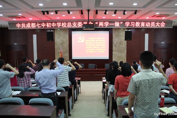 在党旗下,全体党员签定了《“两学一做”学习教育承诺书》,以党员教师的名义,庄严承诺:在“学党章党规、学系列讲话,做合格党员”学习教育中认真学习,积极讨论,带着问题学,针对问题改,理论联系实际,把解决问题贯穿学习教育全过程;竭尽所能,创造最适宜学生的教育,全力做到启迪有方,治学严谨,爱生育人;捍卫党员教师的尊严和荣誉,以人格引导学生,以学识服务学生,传授知识,弘扬真理;竭尽所能,为培养“审是迁善,模范群伦”的七初学生,恪尽职守,兢兢业业。