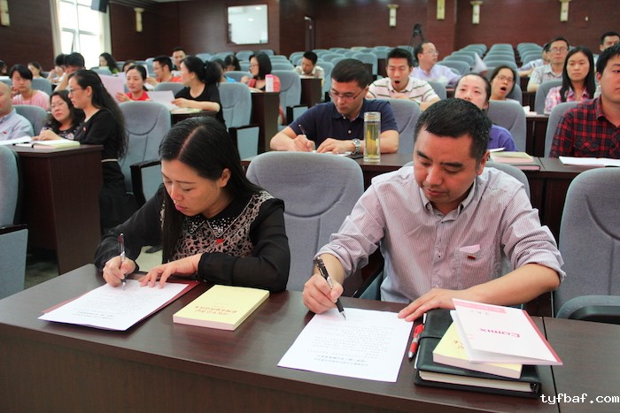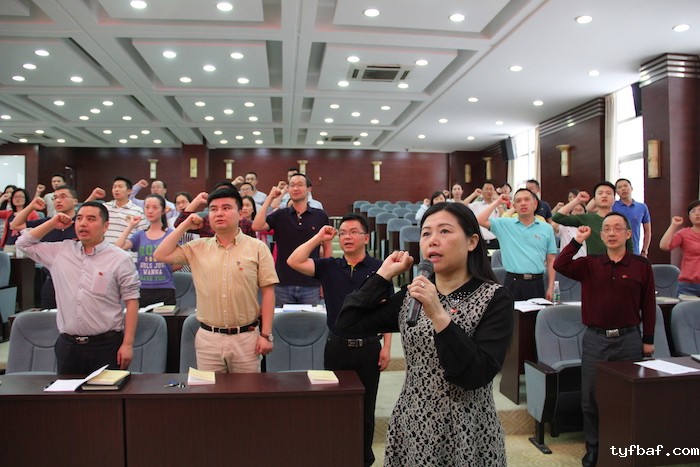会上,李笑非书记带领全体党员重温了入党誓词领,当洪亮的誓言响彻全场时,每个党员心中都激荡着一股豪情,“审是迁善,模范群伦”的教育理想与追求在每个党员的心中定格成坚实的行动。