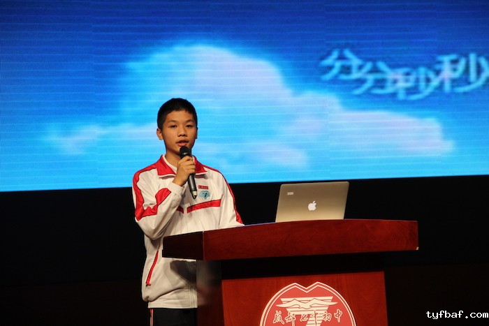 十班的王瀚同学作为学子代表,作了以奋斗的青春最美丽为主题的发言。他在演讲中强调了心理暗示的重要性,并分享了学习自主管理的心得、严于律己的方法。他的话语如春风拂面,吹进了每一个七初学子的心中,只听得心沉而情动,在发言的最后,他满腔的激情化作了连珠炮似的的排比段,听得在场的人豪情万丈,掌声雷动。