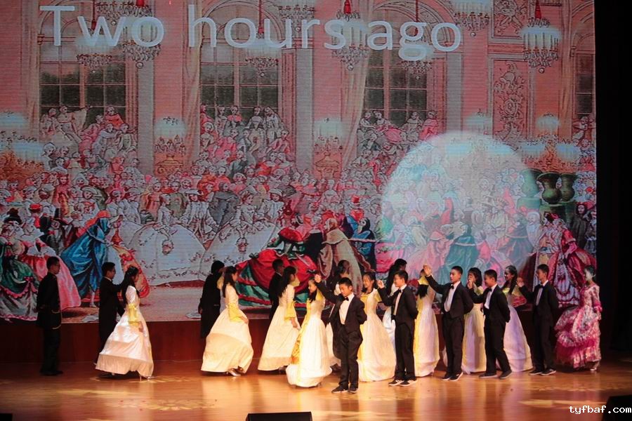 在繁忙的学习中丰富同学们的课余活动,在活动中锻炼着同学们的英语口语表达能力和团队合作能力。各班演出的成功都是挤时间练出来的,如果没有坚持,何来成功。