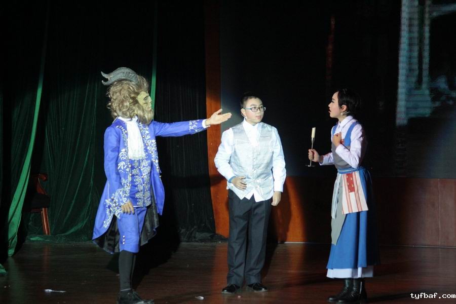 10班表演的《美女与野兽》更是让我们赞叹不已。服装的精美程度不亚于原剧。充满自信的口语为他们增色不少。