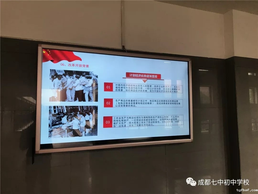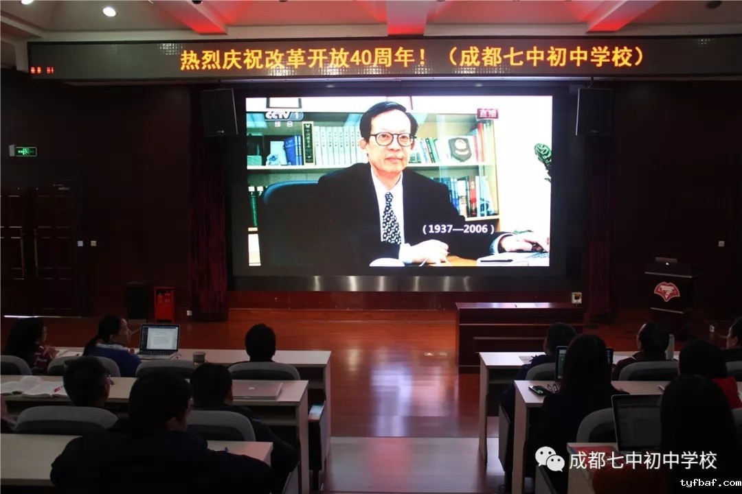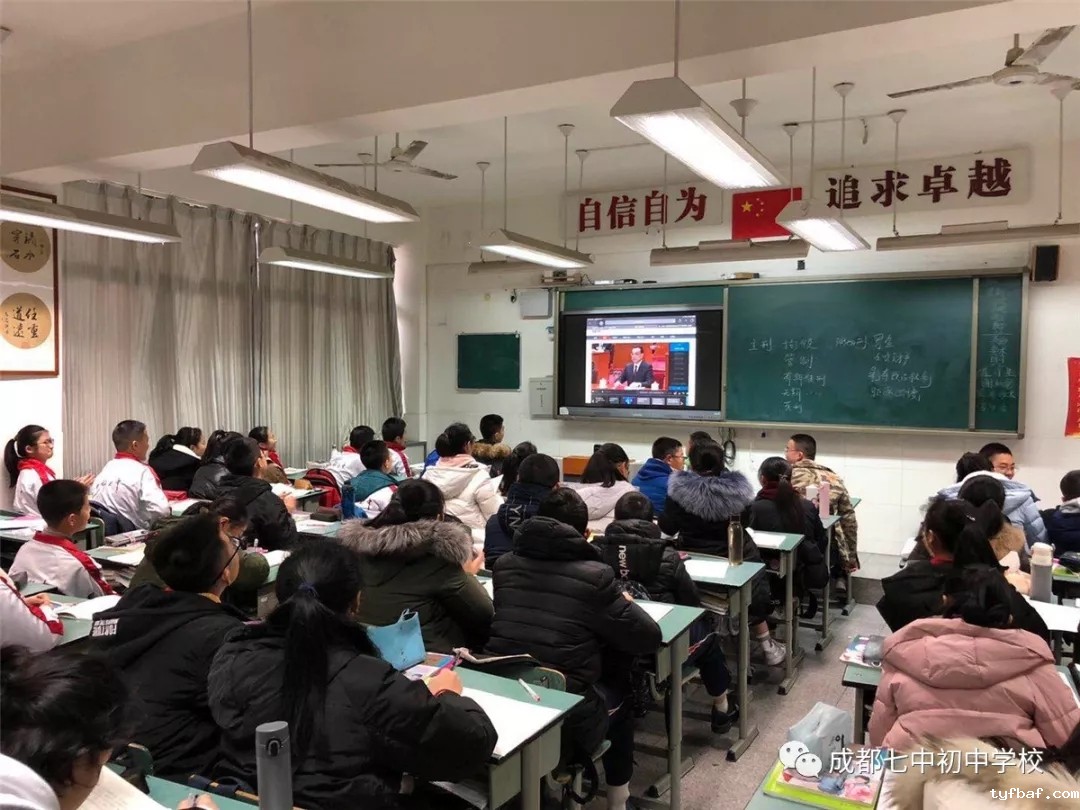 除了学术厅的直播会场,七初全体学生在教室里也通过网络直播观看了本次会议。