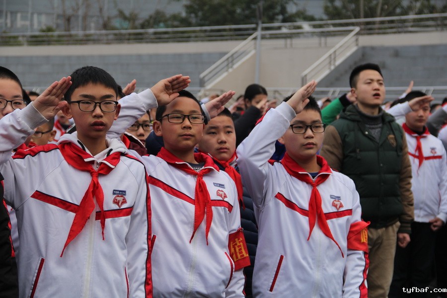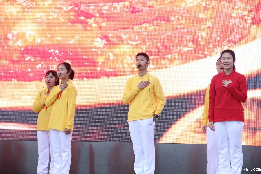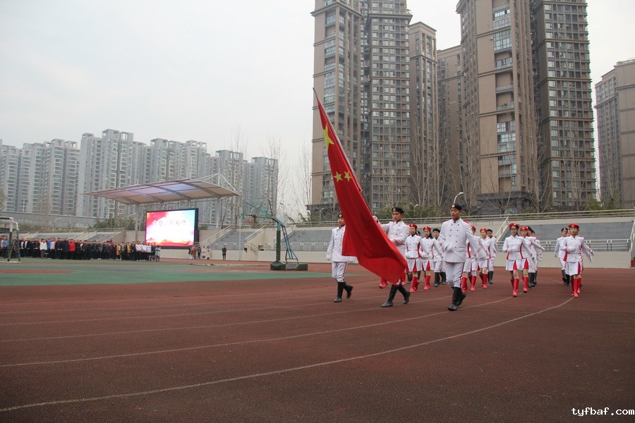 守护责任与使命的国旗护卫队升起了国旗、校旗。雄壮的国歌嘹亮了美丽的校园,飘扬的五星红旗亮丽了蔚蓝的天空。