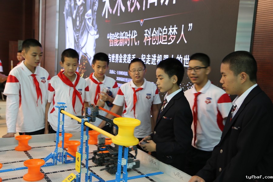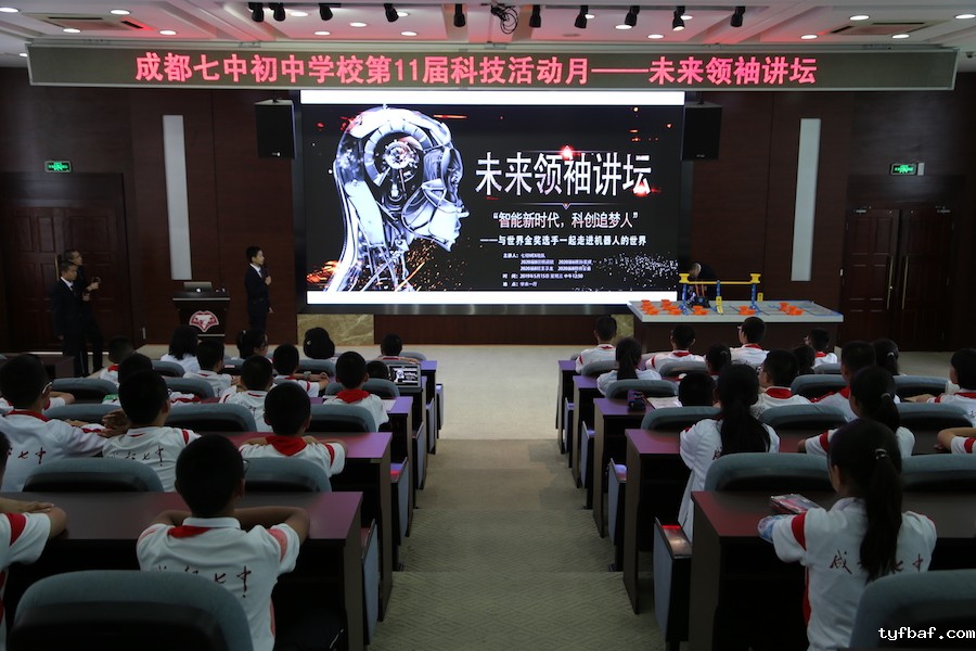 2019年5月15日中午1点,刚刚从美国VEX世界锦标赛载誉归来的七初VEX战队,在学术一厅“第11届科技活动月——未来领袖讲坛”热情开讲,本次未来领袖讲坛的主题是“智能新时代,科创追梦人——与世界金奖选手一起走进机器人的世界”。来自2020届8班的杨涵钦队长带领3名队员分别是2020届6班孙家辉、2020届8班王孚龙、2020届8班杨景盛,热情洋溢的讲述了他们参加VEX世界锦标赛的所见所闻以及心得体会。来自初一年级各个班级的100多名同学聚精会神的聆听讲座,并表现出了对机器人浓厚的兴趣。这次讲座,不仅展示了我校机器人社团的风采,同时让更多的同学认识了机器人和机器人竞赛,激发了同学们对人工智能和科学技术的无限向往,相信在不久的将来会有更多的同学投身于祖国的人工智能事业,为国家科技发展贡献他们的力量!