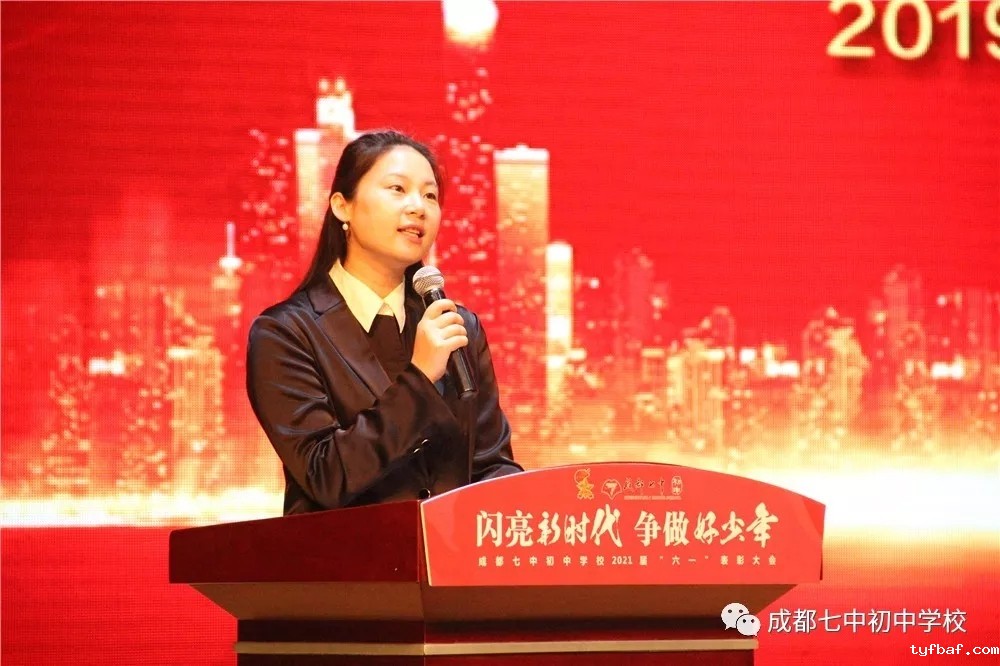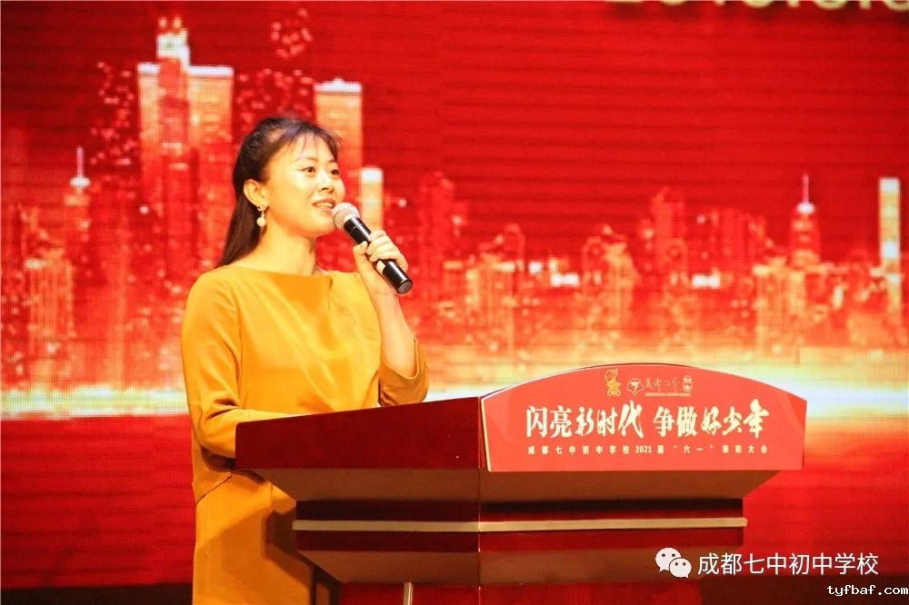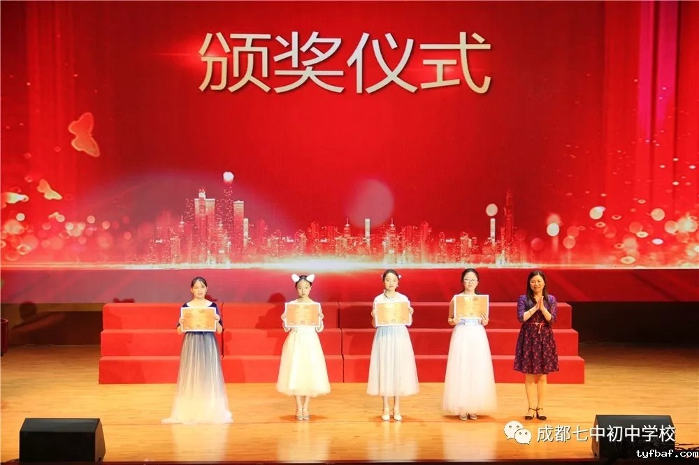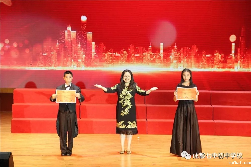评委老师、成都七初附小音乐教师、音乐教研组组长,成都高新区音乐实训基地活动负责人,田鹏老师为获得班级合唱比赛一等奖的班级颁奖。