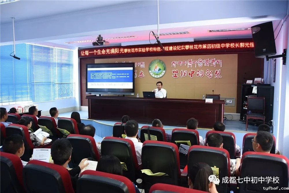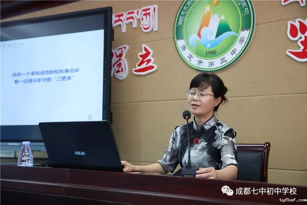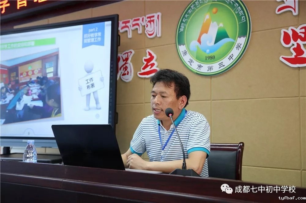 康定市第三中学曾祥明主任作《教学管理》专题发言,展示了康定三中教学管理方面的特色。