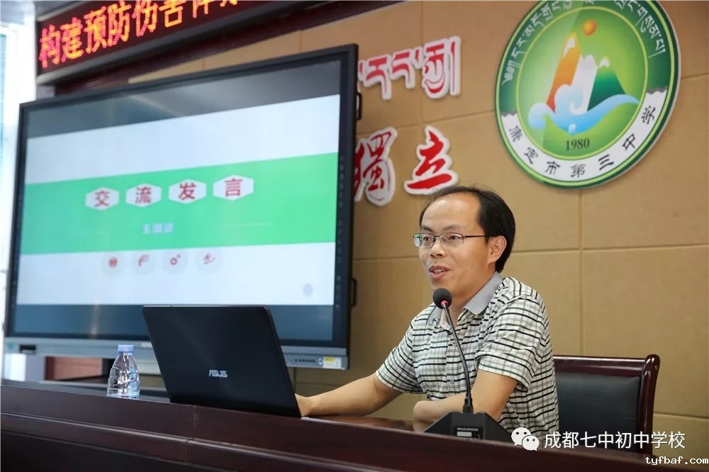 成都市西北中学外国语学校王国贤校长作题为《构建预防伤害体系 共护学生健康成长》发言,为大家介绍了如何构建学生安全保护体系的做法,为学校在保护学生安全及促进学生健康成长提供了宝贵经验。