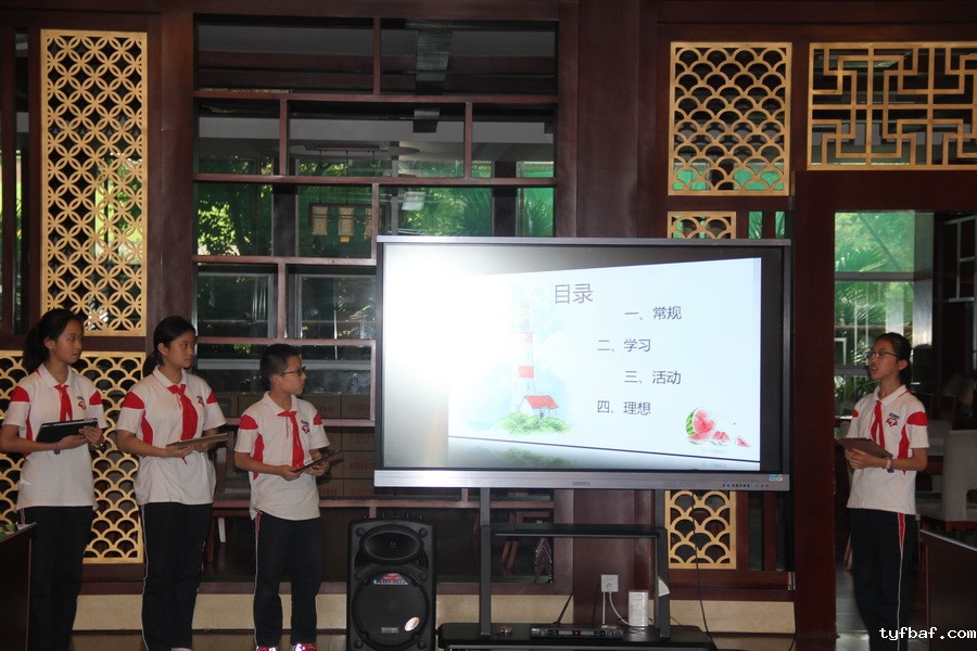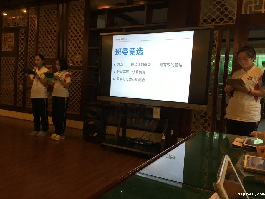 在课程教学中心副主任吴旭光老师的组织下,各班的班委们按顺序介绍了这学期各自班上的情况。各班班委分别从各班的纪律、学习、团队活动和对下学期展望四个方面总结了各自班上同学们的表现以及班委们的做法。每个班的总结各有特色,以不同的方式展现了这一学期以来班委们兢兢业业的工作态度。