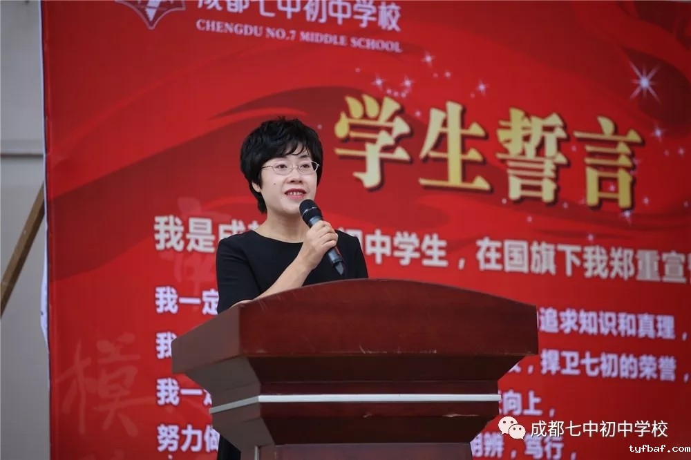 李笑非校长首先代表学校向新加入七初的同学们表示了热烈的欢迎,深情回顾了七初建校至今艰苦奋斗的11年历程。李笑非校长阐释了“审是迁善,模范群伦”的校训释义,“七初之问”的启发意义,寄以深情鼓励2022届新同学,珍惜时光,把握现在,潜心钻研,不懈追求,大胆质疑,做未来社会栋梁,让模范群伦成为每个人心中永恒的信念!现场掌声雷动,将典礼推向了高潮。