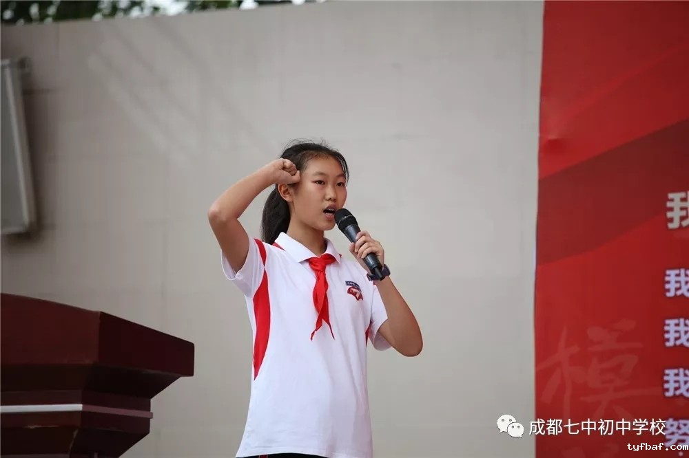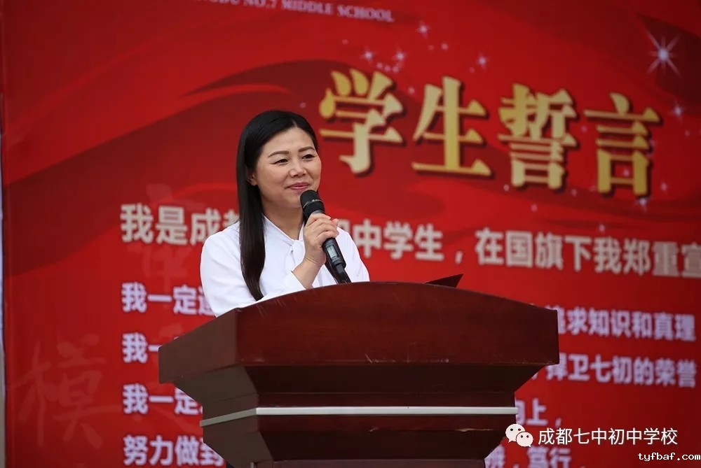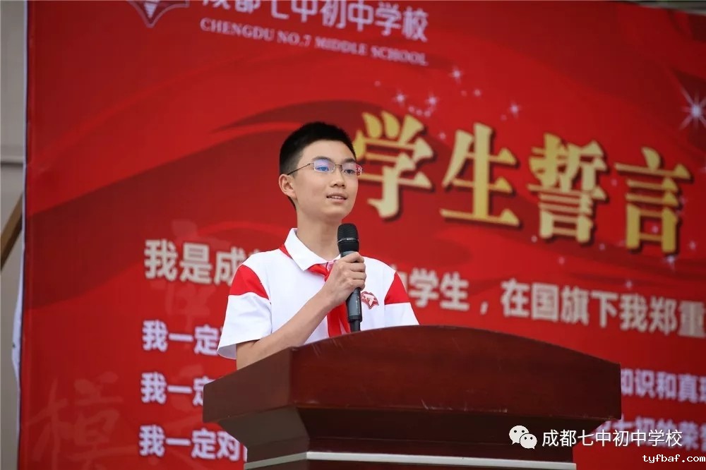 2021届优秀学生代表王郝佳同学带领全体新生庄严地宣誓,一定竭尽所能,全力以赴,成长为审是迁善模范群伦的七初人。