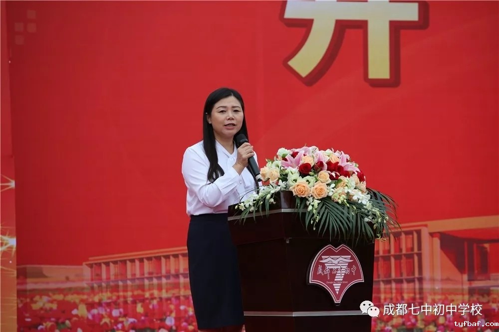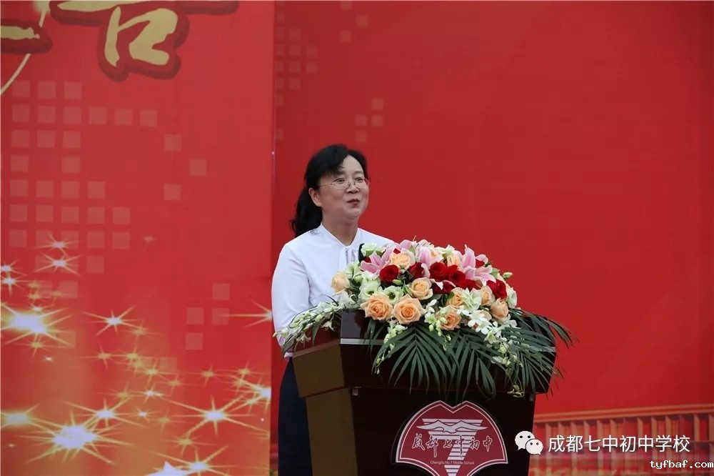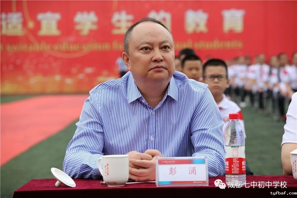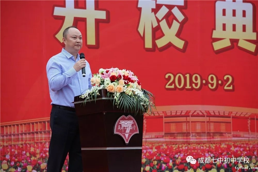 成都高新区社区发展治理和社会事业局局长彭涌致辞。他赞赏七中初中办学十年,成绩显著,有口皆碑。他希望领导班子带好头,起好步。全体老师凝心聚力,同心同德,贡献智慧力量,助力七初成长,助力高新教育发展,开创高新教育新篇章!