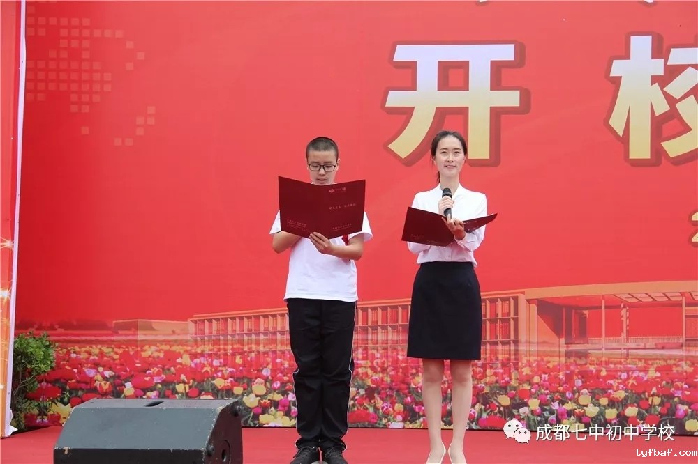 李笑非校长监誓,团委书记李薇老师领誓,誓做“审是迁善,模范群伦”的七初学子!