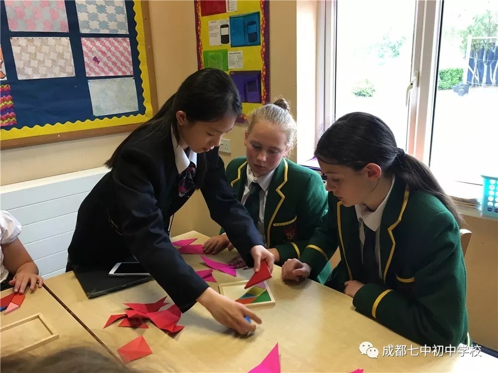 我们此次来英国友校访问交流和插班学习,了解英国文化和教育,同时也肩负传播中国优秀传统文化,讲好中国故事,让英国青少年听见中国的声音的责任。为此,领队卿立华老师和王婷老师带领我们给兰德福瑞中学的同学们带来了一堂分享型、互动式的中国传统文化益智课:七巧板——中国文化与古老智慧。