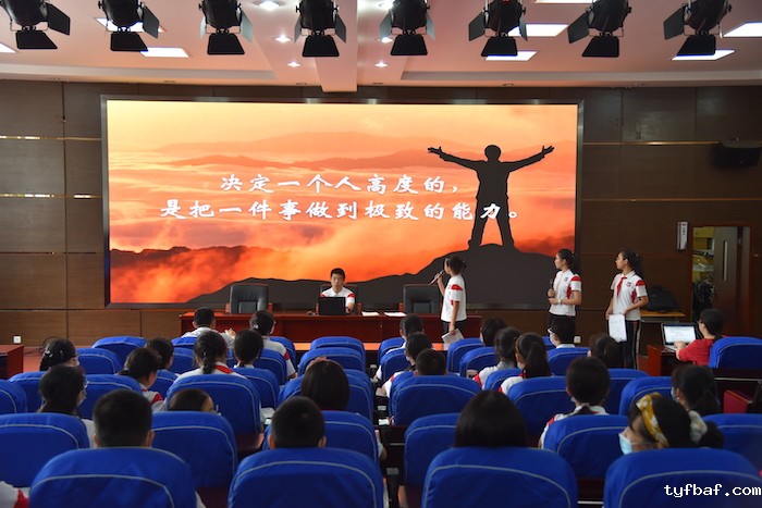 最后校长助理孙余老师和学生成长中心副主任唐克明老师以“决定一个人高度的,是把一件事做到极致的能力”为主要思想,为大队部及学生会一学年的工作作出总结并提出新的希望和要求。