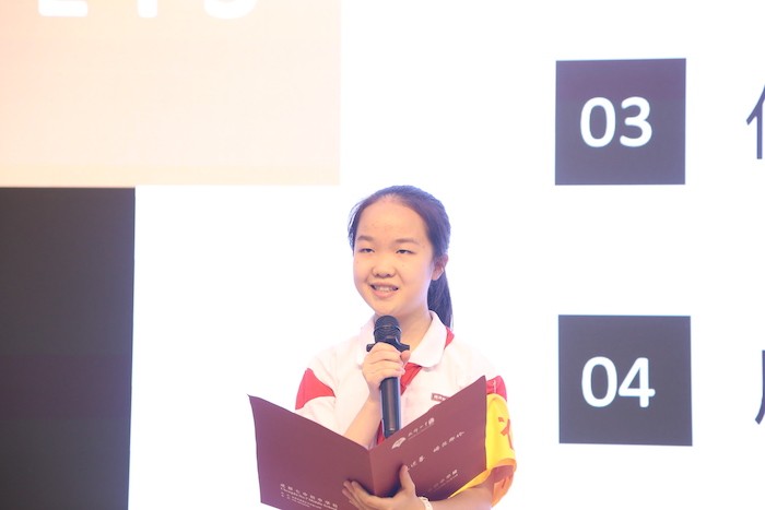 红领巾广播站的蒋沛言同学代表广播站总结了本学期的广播活动。蒋沛言同学提到,广播站的再次开播来自于老师们的创意与帮助,同学们的落实与勤奋。我们将力争为同学们带来丰富多彩的校园生活,传递积极向上的七初之声。让我们一起期待明天、展望未来!